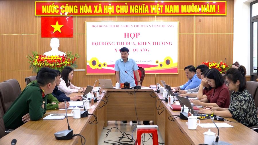 Chiều 23/3, Hội đồng Thi đua, Khen thưởng xã Bắc Quang tổ chức họp xét, đề nghị khen thưởng các tập thể, cá nhân có thành tích xuất sắc trong đợt thi đua tổ chức cuộc bầu cử đại biểu Quốc hội khóa XVI và đại biểu HĐND các cấp nhiệm kỳ 2026–2031 trên địa bàn xã. Đồng chí Trần Minh Hữu – Phó Bí thư Đảng ủy, Chủ tịch UBND xã, Chủ tịch Hội đồng Thi đua, Khen thưởng xã chủ trì cuộc họp.