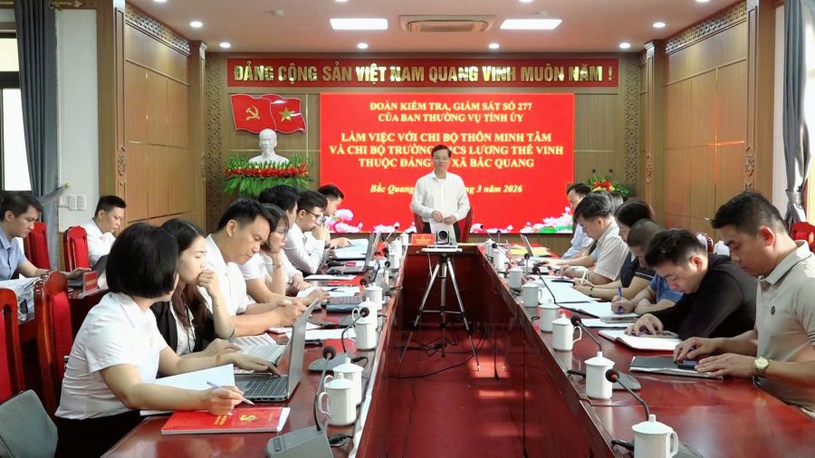 Sáng ngày 30/3, Đoàn kiểm tra, giám sát số 277 của Ban Thường vụ Tỉnh ủy do đồng chí Trần Quang Minh, Ủy viên Ban Thường vụ Tỉnh ủy, Trưởng Ban Tổ chức Tỉnh ủy làm Trưởng đoàn đã có buổi làm việc với Chi bộ thôn Minh Tâm và Chi bộ Trường THCS Lương Thế Vinh, xã Bắc Quang. Dự buổi làm việc về phía xã có các đồng chí: Phan Ngọc Hiệp – Uỷ viên BCH Đảng bộ Tỉnh, Bí thư Đảng ủy, Chủ tịch HĐND xã; Hoàng Thị Thảo Hương – Phó Bí thư Thường trực Đảng ủy, giám đốc Trung tâm Chính trị xã; Trần Minh Hữu – Phó Bí thư Đảng uỷ, Chủ tịch UBND xã; Lãnh đạo Ban xây dựng Đảng Đảng ủy; Ban chi ủy 2 chi bộ.