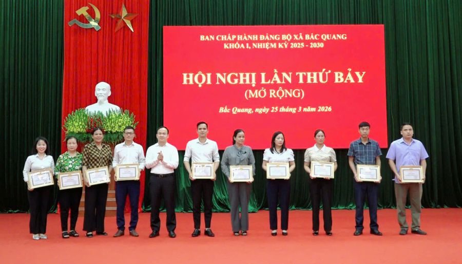 Chiều ngày 25/3, Đảng ủy xã Bắc Quang tổ chức Hội nghị Ban Chấp hành Đảng bộ xã lần thứ Bảy, khóa I, nhiệm kỳ 2025 – 2030 (mở rộng). Các đồng chí: Phan Ngọc Hiệp – Uỷ viên BCH Đảng bộ tỉnh, Bí thư Đảng ủy, Chủ tịch HĐND xã; Trần Minh Hữu – Phó Bí thư Đảng ủy, Chủ tịch UBND xã chủ trì Hội nghị. Dự hội nghị có Thường trực UBND, UBMTTQ xã; Các đồng chí Ủy viên BTV Đảng ủy, BCH Đảng bộ xã; lãnh đạo các cơ quan, đơn vị, các tổ chức chính trị - xã hội; bí thư các chi bộ, trưởng thôn trên địa bàn xã.