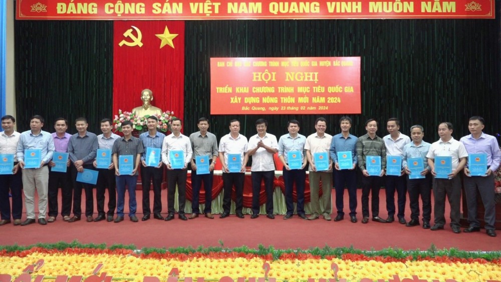 Mục tiêu chính huyện Bắc Quang đề ra trong năm 2024 là: Hoàn thành 43 tiêu chí xã nông thôn mới theo Kế hoạch của tỉnh giao; Hoàn thành thêm 05 tiêu chí đánh giá chưa đạt qua kết quả đánh giá của các sở, ngành và tự rà soát đánh giá của các xã: Bằng Hành, Đông Thành, Đồng Tâm, Hữu Sản và Tân Lập; Hoàn thành 20 tiêu chí xã nông thôn mới nâng cao, 212 tiêu chí thôn nông thôn mới tại 41 thôn của 05 xã: Đồng Tiến; Đức Xuân; Tân Lập; Tân Thành; Thượng Bình; Phấn đấu đạt thêm 09 tiêu chí đô thị văn minh tại 02 thị trấn; Tiếp tục triển khai thực hiện 04 tiêu chí huyện nông thôn mới, gồm: tiêu chí giao thông; tiêu chí văn hóa, y tế, giáo dục; tiêu chí kinh tế...